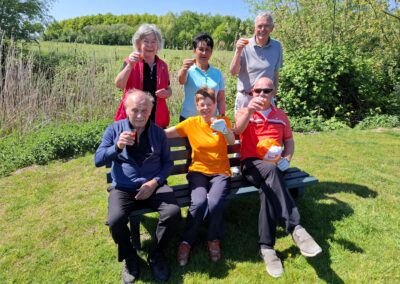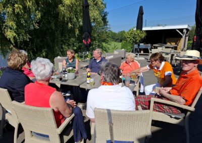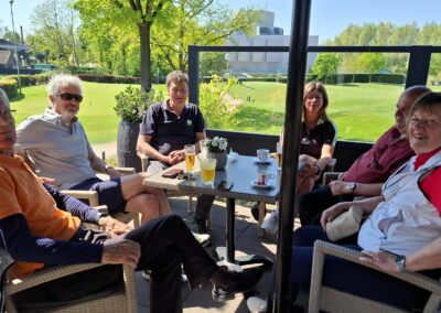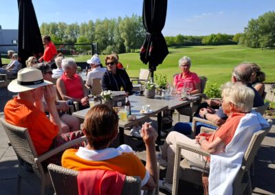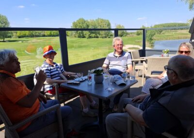 Moe maar voldaan streken ze uiteindelijk allemaal weer neer op het zonnige terras om te genieten van wat koude drankjes waarna wij de gestoken vlaggetjes konden ophalen om zo de uitslag te bepalen.